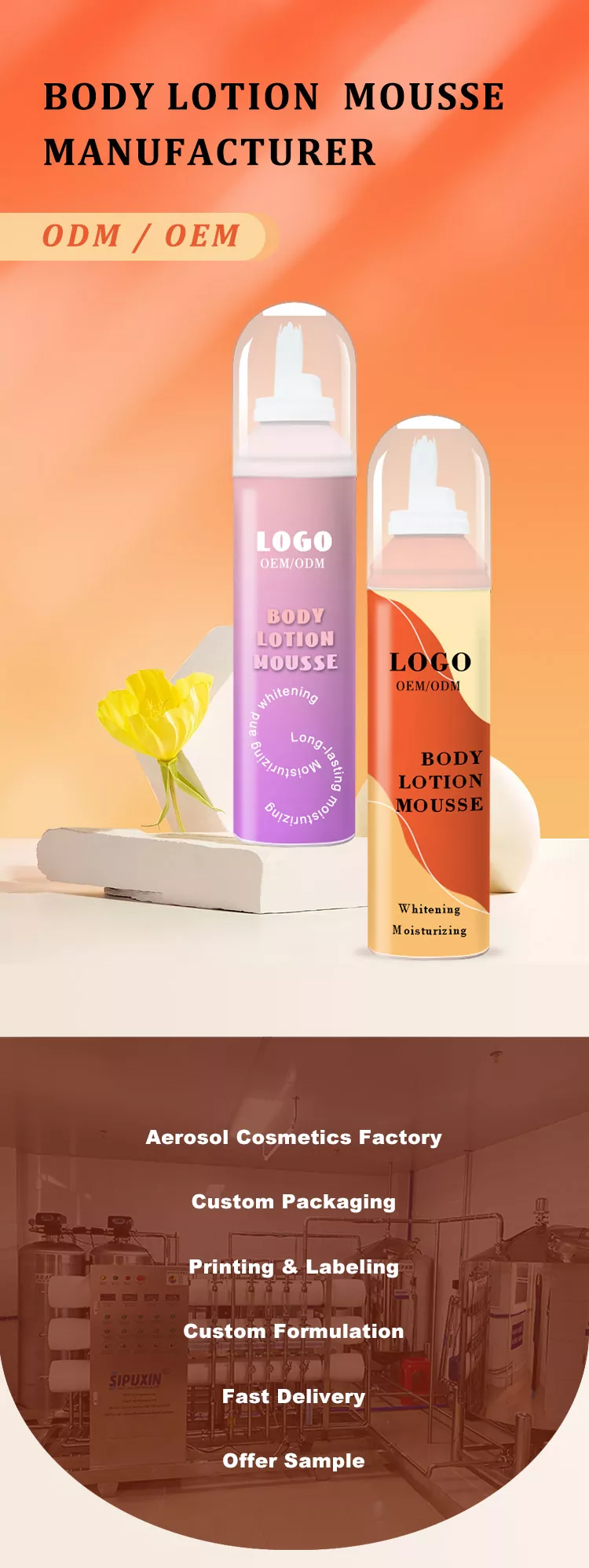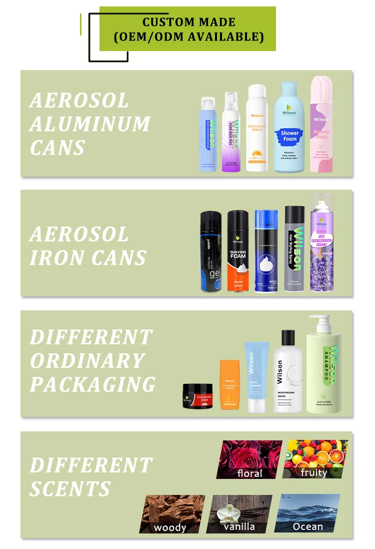 Wilson Quick Absorption Lightweight Structure Body Lotion Mousse to długotrwały krem nawilżający, który może zostać wchłonięty przez ciało. Nasz mus występuje w formie aerozolu w aluminiowej puszce, która po naciśnięciu wytwarza bogatą pianę. W porównaniu do uczucia ciężkości i lepkości tradycyjnych balsamów, nasz mus do ciała zapewnia lekką konsystencję, przypominającą chmurę miękkości i gęstości. Dodatkowo do wyboru mamy różnorodne formuły, można np. dodać do formuły wysoce skuteczne ekstrakty nawilżające takie jak kwas hialuronowy wielokrotny, naturalne ekstrakty roślinne itp., które mogą sprawić, że mikrostruktura pianki będzie bardziej sprzyjała kompozycji składników bezpośrednio pod skórą, dzięki czemu będzie intensywnie nawilżać i blokować, długotrwale nawilżać skórę. Skóra jest nawilżona od wewnątrz.