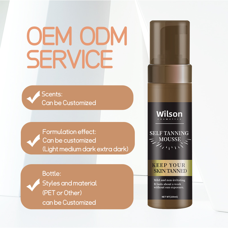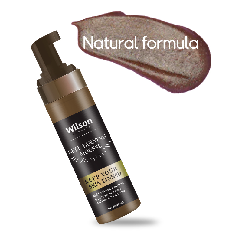 Kolor rozwija się w ciągu 4-8 godzin, dla tych, którzy chcą uzyskać długotrwałą opaleniznę i chronić przed oparzeniami słonecznymi UV, Wilson Exfoliate Nourishes Szybkoschnący mus samoopalający pomaga uzyskać naturalną pszeniczną cerę, Wspomaganie opalania i regeneracja po opalaniu, 12 -godzinna ciągła naprawa.